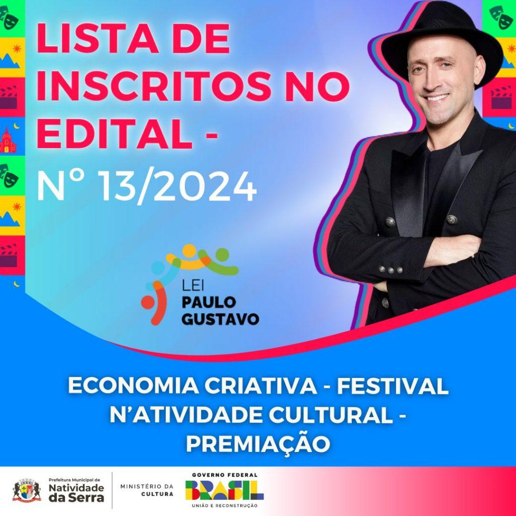 LISTA DE INSCRITOS NO EDITAL Nº 13/2024 -ECONOMIA CRIATIVA – FESTIVAL N’ATIVIDADECULTURAL – PREMIAÇÃO