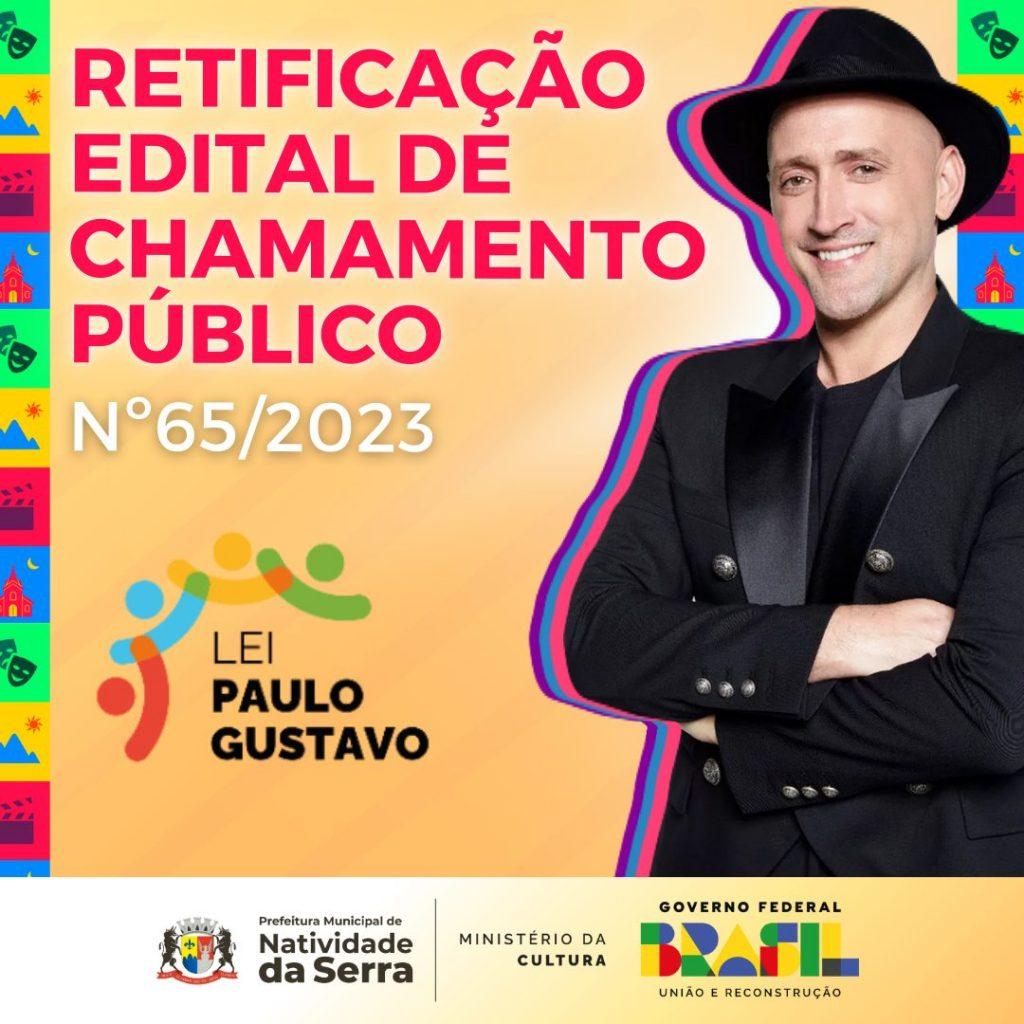 Atenção classe artística de Natividade da Serra!! A Prefeitura de Natividade da Serra através da Secretaria de Turismo, Esporte e Cultura informa que as inscrições à Lei Paulo Gustavo foram prorrogadas para até dia 18 de março. Como se inscrever? A documentação deve ser encaminhada por formulário disponível no www.natividadedaserra.sp.gov.br ou pessoalmente no Centro