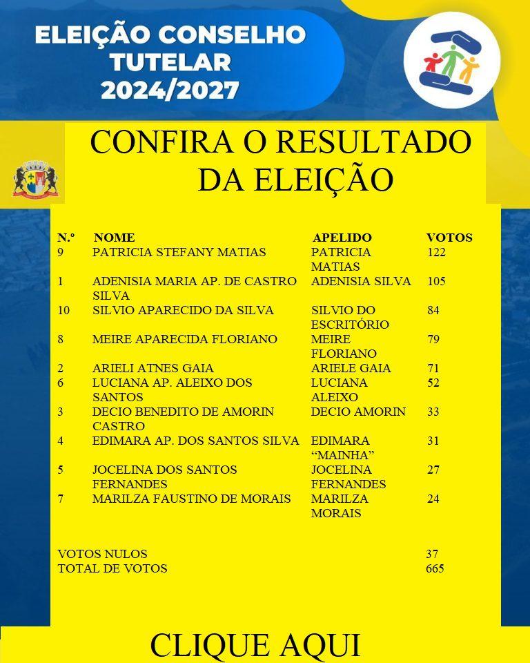 RESULTADO OFICIAL E PRELIMINAR DA ELEIÇÃO DOS CONSELHEIROS TUTELARES PARA O QUADRIÊNIO 2024/2027